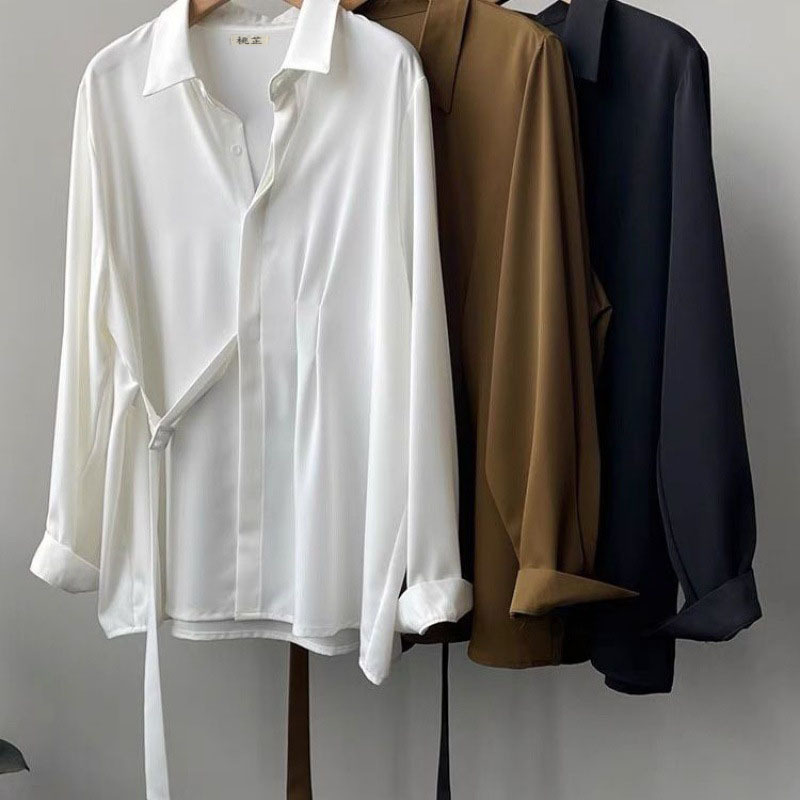 サイドレースアップドレープシャツ レディース 2025 春秋 ゆったりフレンチスタイルシャツ デザイン性のあるニッチな長袖シャツ