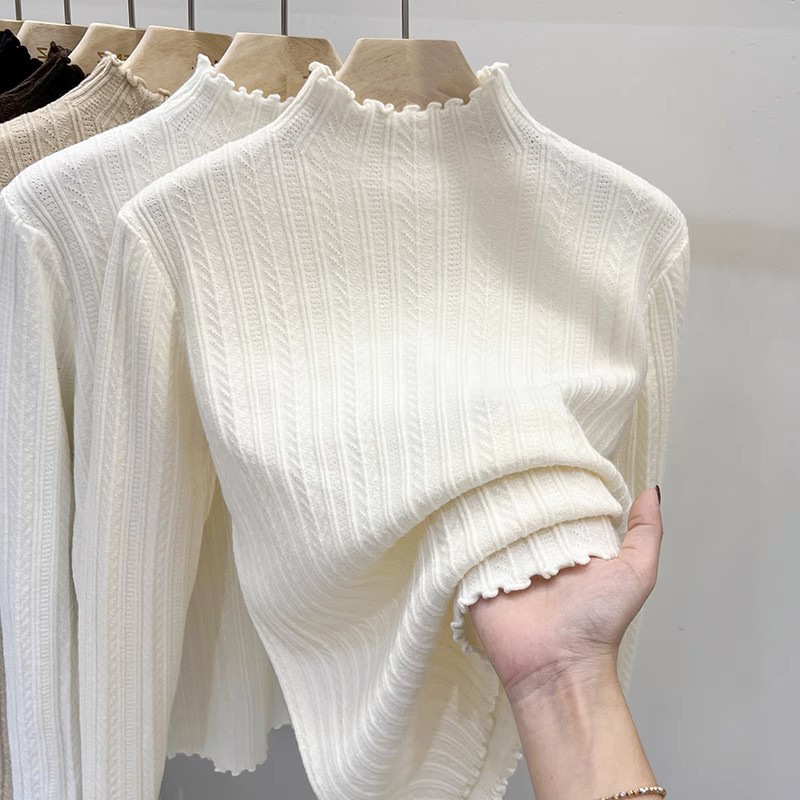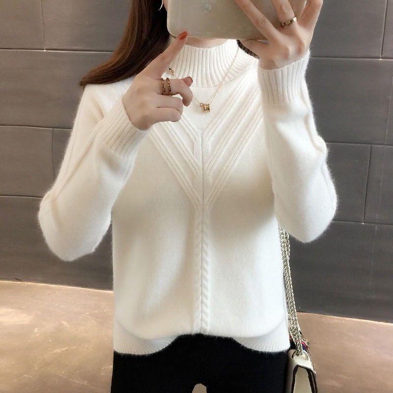 木の耳元のニットの半高襟の底のシャツの女性の中に白い底のセーターの女性の2024春秋の新型の上着を掛けます。
