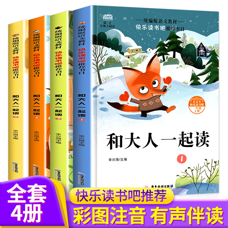 大人と一緒に読む、小学1年生上巻課外図書全4冊、楽しい読書を推奨、カラー絵とふりがな付き版