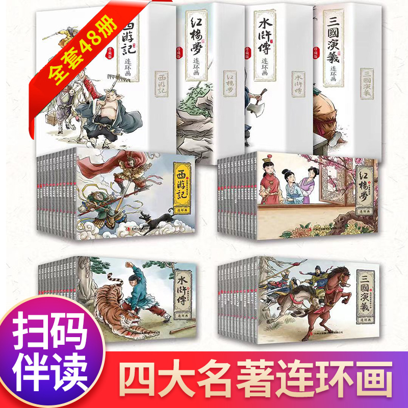 四大名著絵本絵本全48冊児童早教啓蒙古典漫画物語本有声版