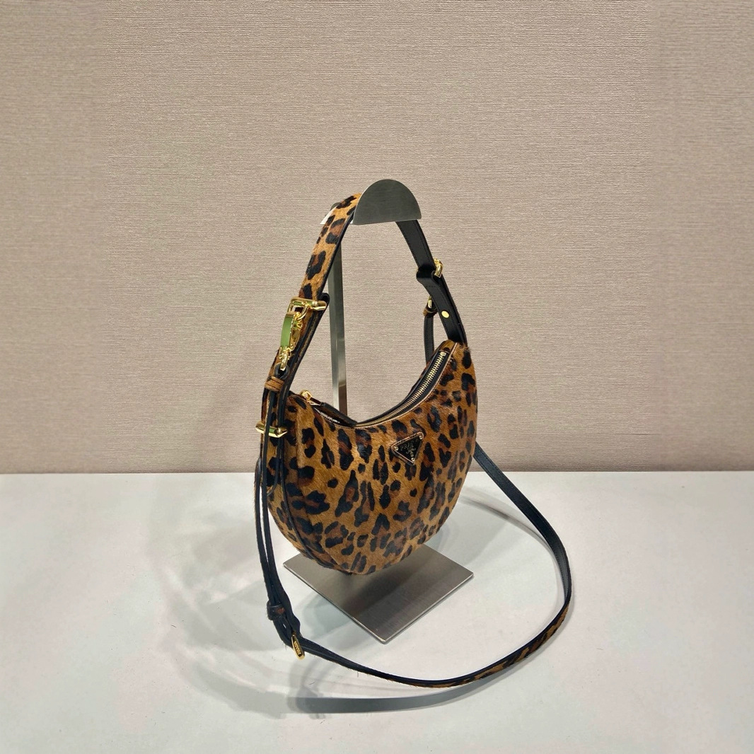 2024 秋冬新 P ファミリーレトロヒョウ柄脇の下バッグ 1BC204 レディースバッグチェーンショルダーバッグハーフムーンバッグ