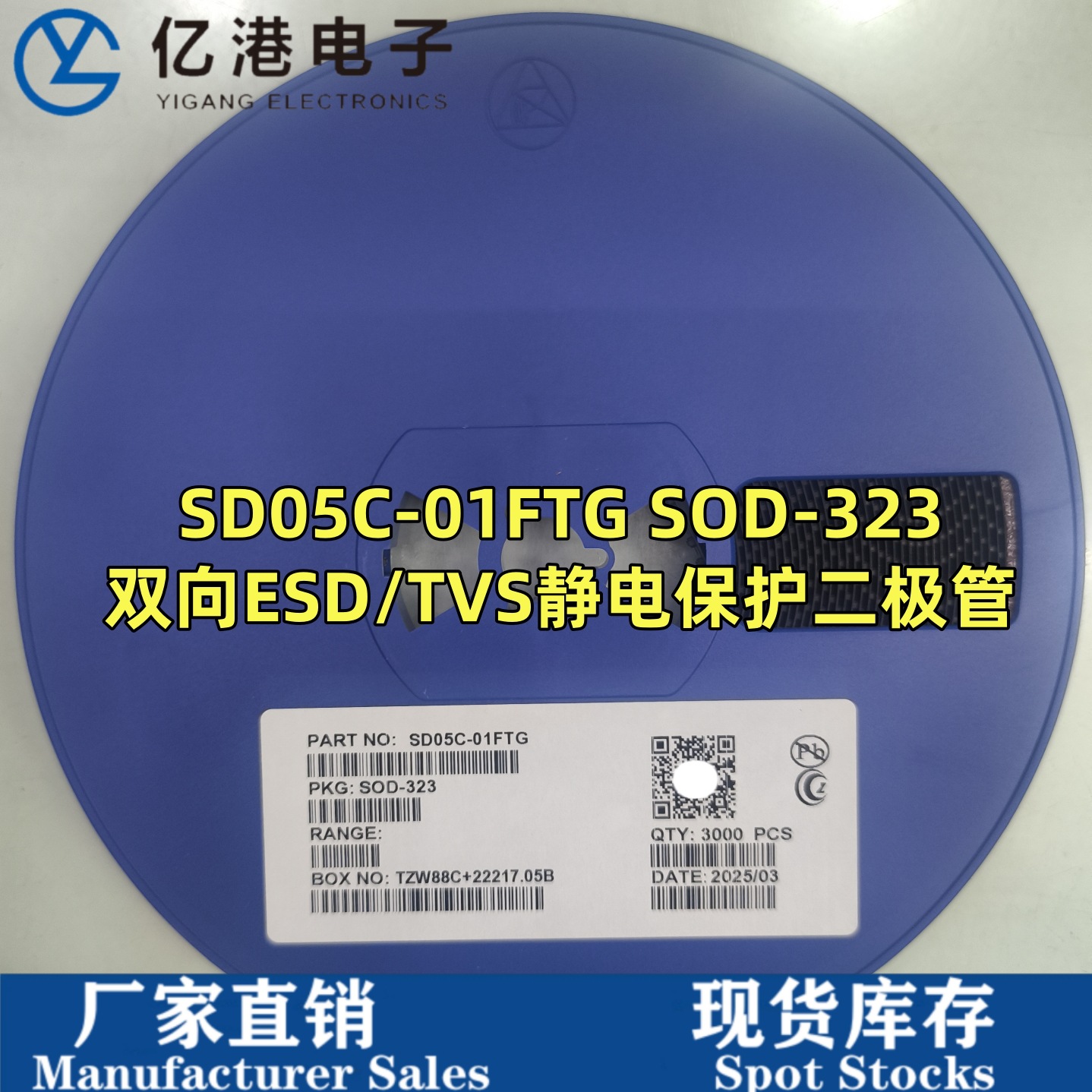 SD05C シルクスクリーン 05B SOD-323 双方向 ESD 保護チューブ TVS ダイオード 3000/ディスクを直接撮影可能