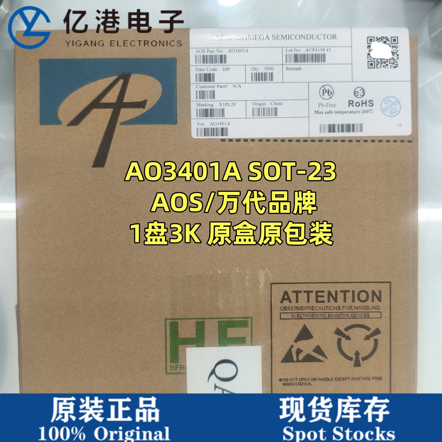 A03401A AO3401 sot-23 30V/4.2A PチャネルMOS AOS米国バンダイ正規品