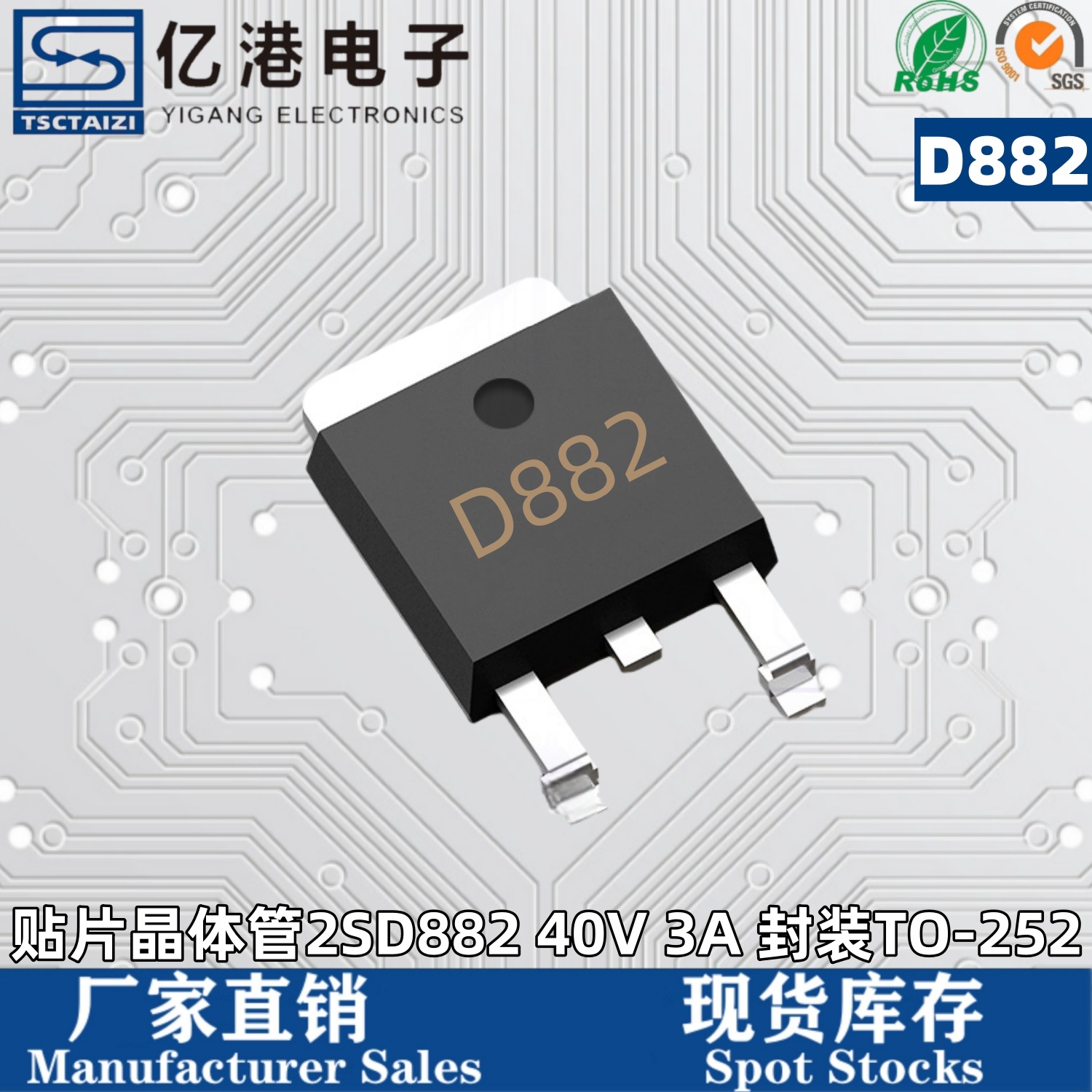 国産足チップ2SD882トランジスタD882シルクプリントTO-252パッケージトランジスタ3a 40vスポット