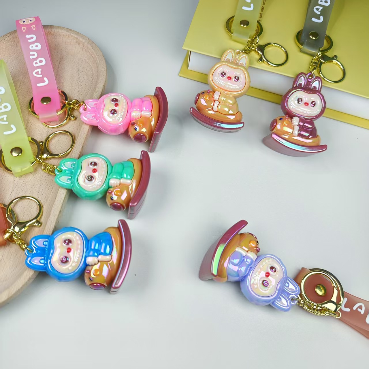 越境貿易漫画風木馬電気メッキラブブキーホルダー立体装飾飾り車の鍵