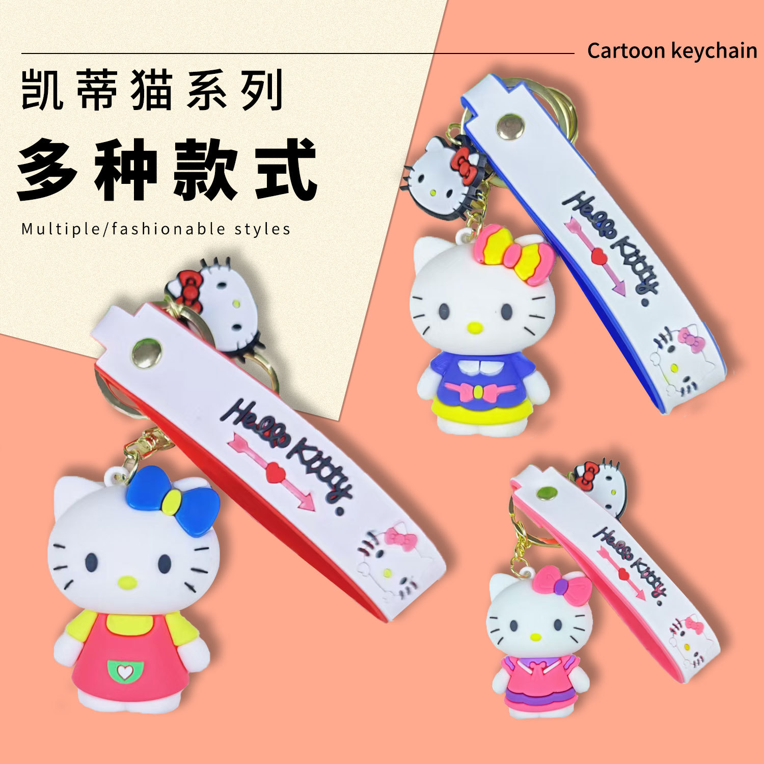 クリエイティブな漫画風変装KT猫キーホルダー、中国風KT猫通学キーチェーン、男女兼用バッグ用小物、国潮