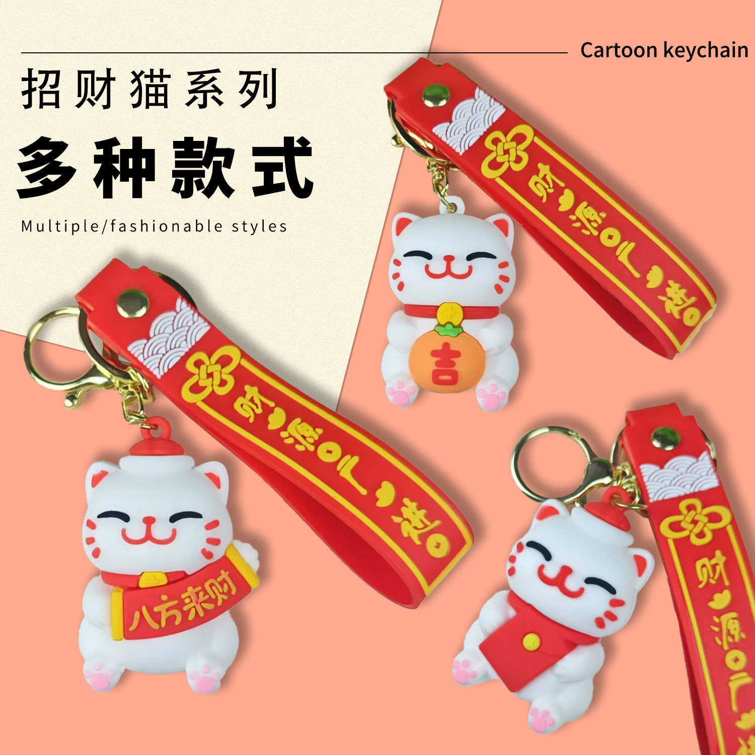 かわいい招き猫キーホルダーペンダントソフトプラスチック PVC 立体人形手作り携帯電話ケースクリームプラスチックキーホルダー