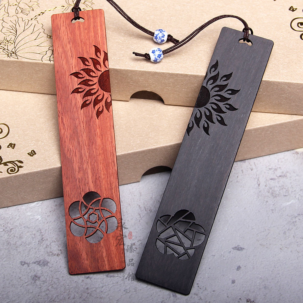 レッドウッド太陽ツリーしおり中国風木製しおり黒檀紫檀レーザー彫刻対札刻印可能