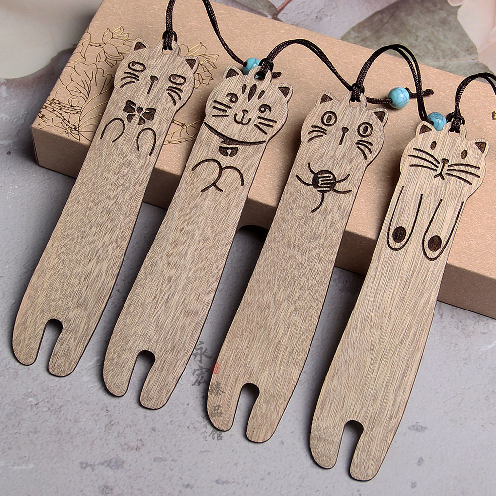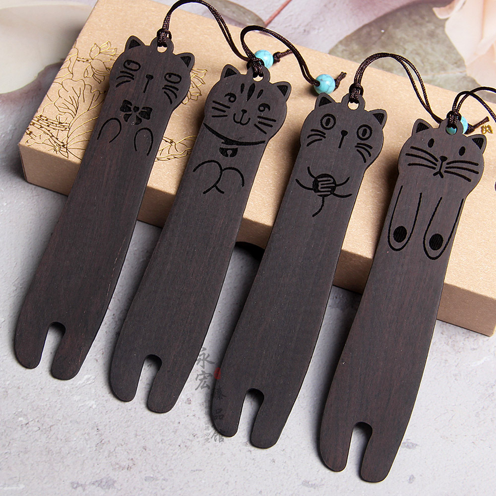 黒檀かわいい子猫のしおり赤木猫のしおり創意漫画猫のしおり高校記念品現物