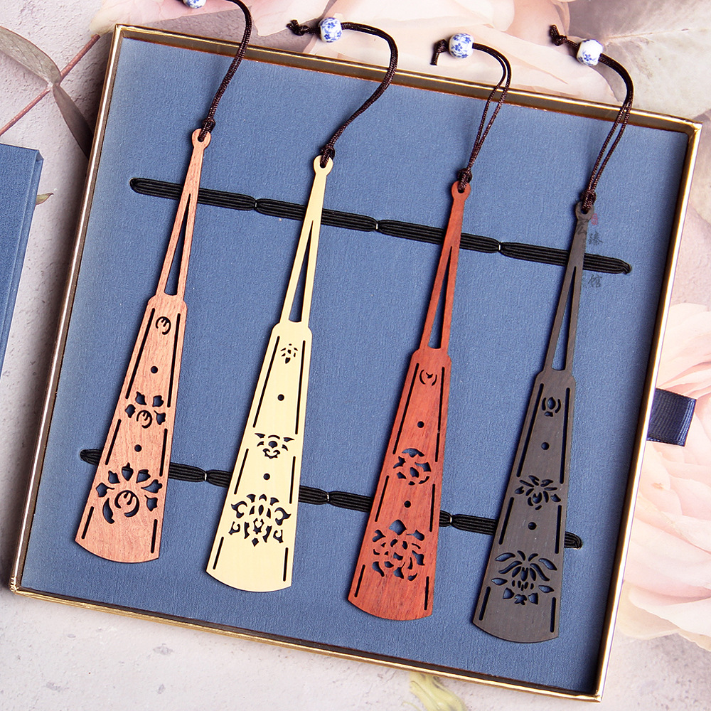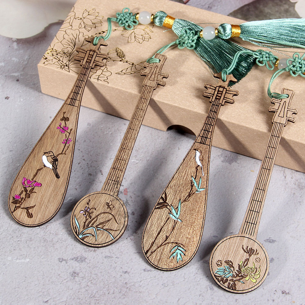 琵琶のしおりを彩る中国風梅蘭竹菊のしおり創意的な阮塩木質のしおりは字を刻むことができます。