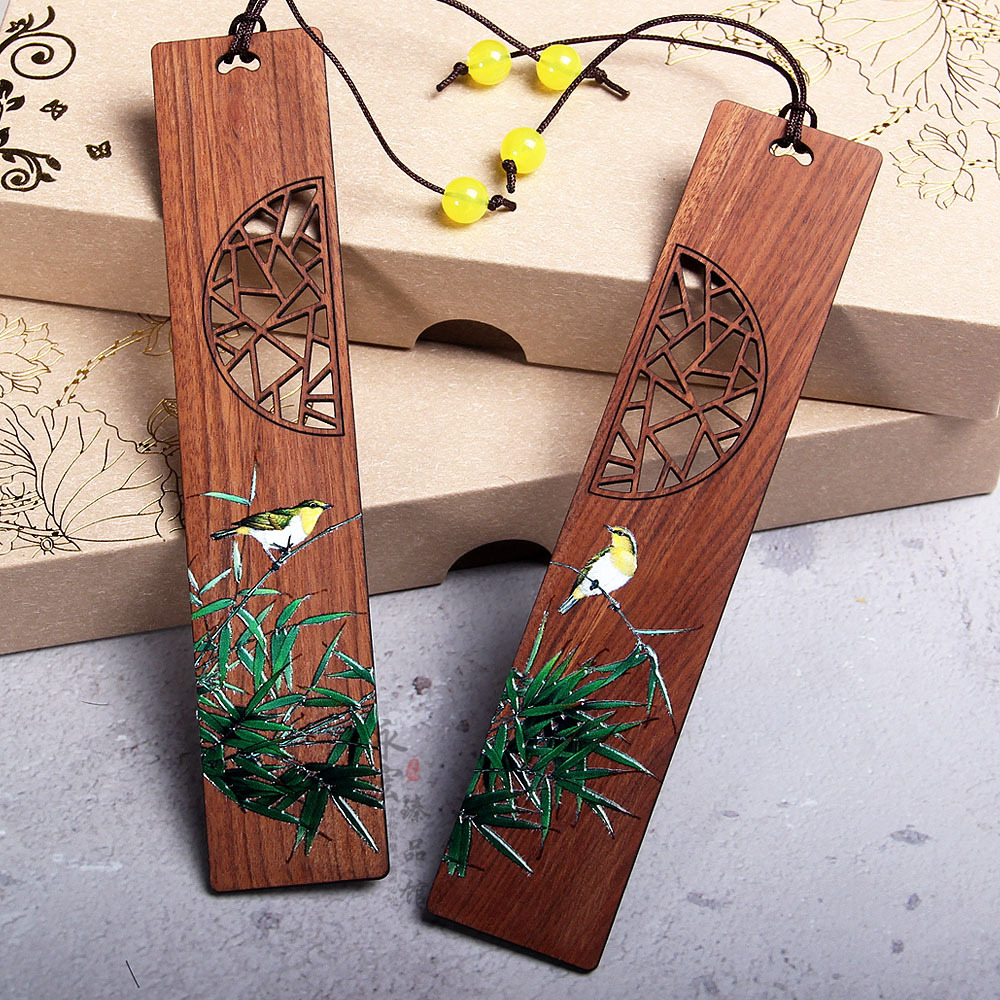 色絵の酸っぱい木の竹のうぐいすのしおりの赤い木の花鳥のしおりの透かし彫りの窓のしおりは字のlogoを刻むことができます。