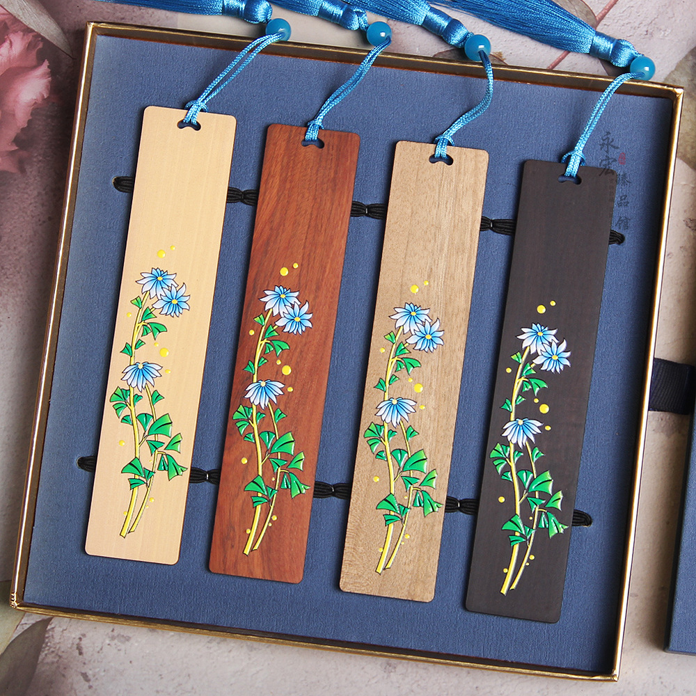 金糸楠木梅蘭竹菊彩絵しおり紅木彩絵しおり大学銀行校慶プレゼント