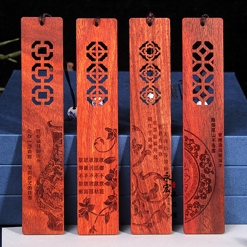 黒檀カップルのしおり紫光檀アカシア赤豆のしおり透かし彫りの檀木のしおりは字のlogoを刻むことができます。