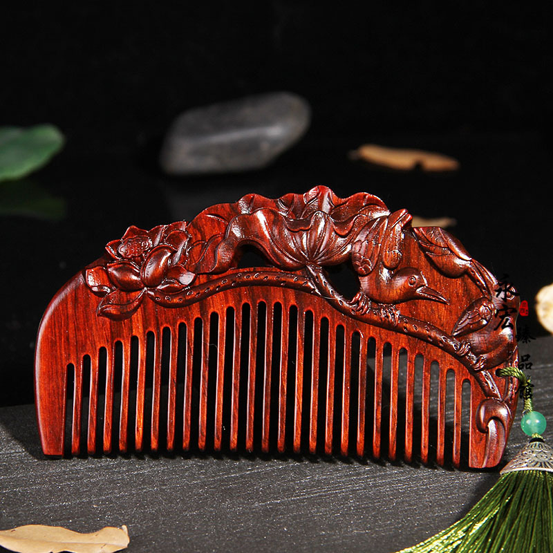 小葉紫檀双喜臨門櫛紫檀喜上眉梢木櫛花鳥櫛は字を刻むことができます。