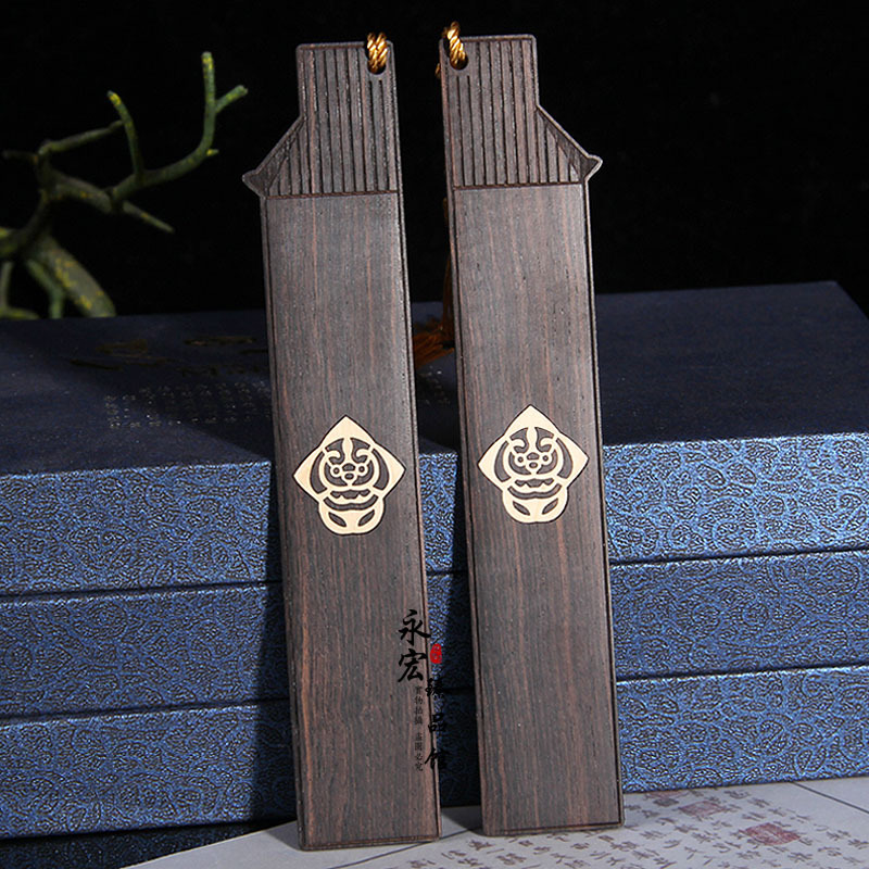 紫檀青花磁器ブックマーク中国風紅木ブックマーク文創礼品高校銀行彫刻ロゴ