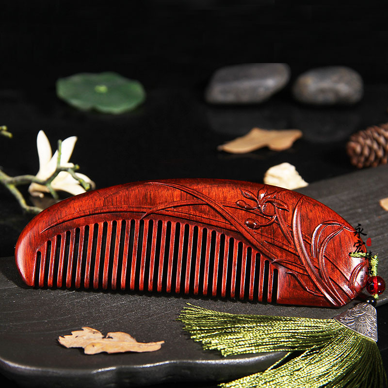 小葉紫檀蘭櫛紫檀彫刻幽蘭木櫛観光地区観光記念品は字を刻むことができる