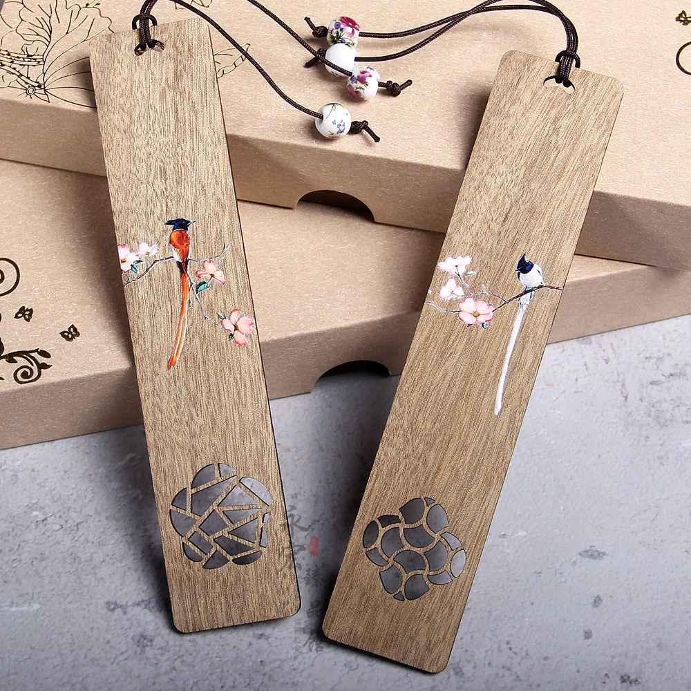 色絵の金糸楠木鳥語の花の香りのしおりの小葉楠花鳥は署名のカップルのしおりに対して字を刻むことができます。