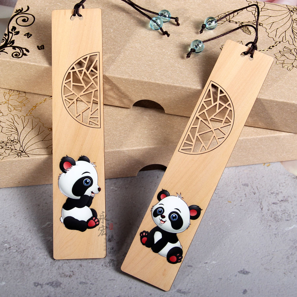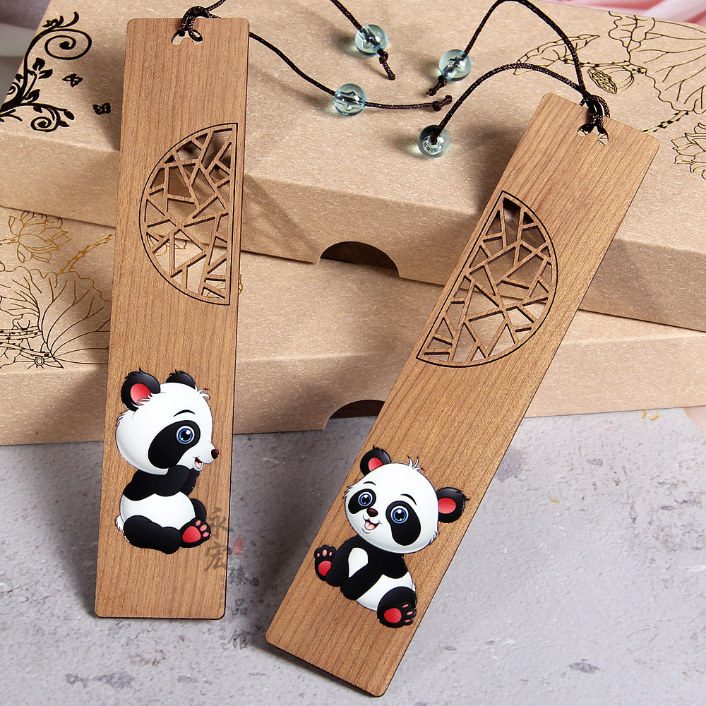 色絵の黄楊木のパンダのしおりの色絵のパンダの文創のしおりの赤い木の透かし彫りのしおりは字のlogoを刻むことができます。
