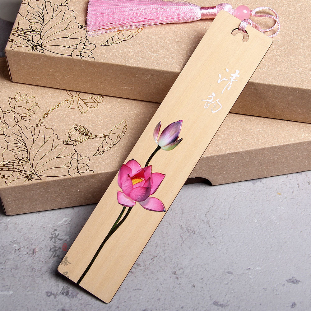 色絵の黄楊の木の清韻のしおりの黄楊の木のハスの花のしおりの木の蓮のしおりは字のlogoを刻むことができます。