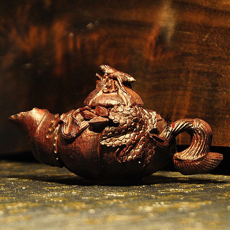 ベトナムの黄色のナシの楊枝の缶は木の彫刻の工芸品の赤い木の文を飾ってビジネスのアイデアの贈り物を遊びます。