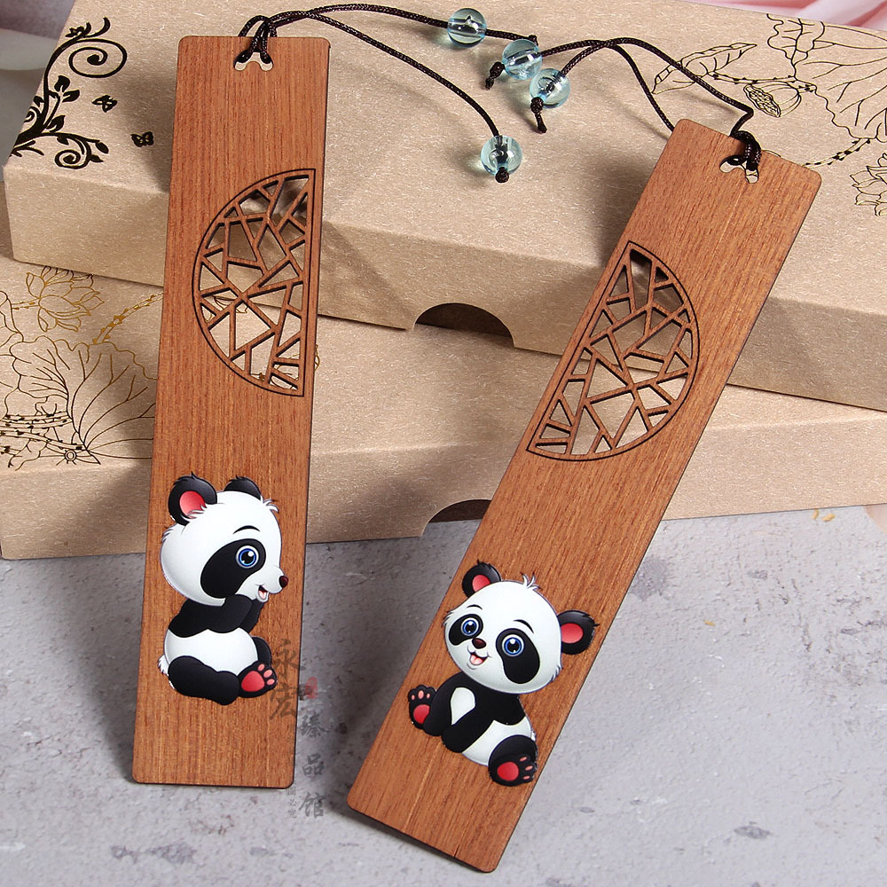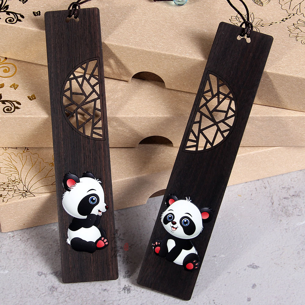 黒檀の色絵パンダのしおりの色絵パンダのしおりの赤ちゃんパンダの記念品は外国のお客さんに字を刻むことができます。