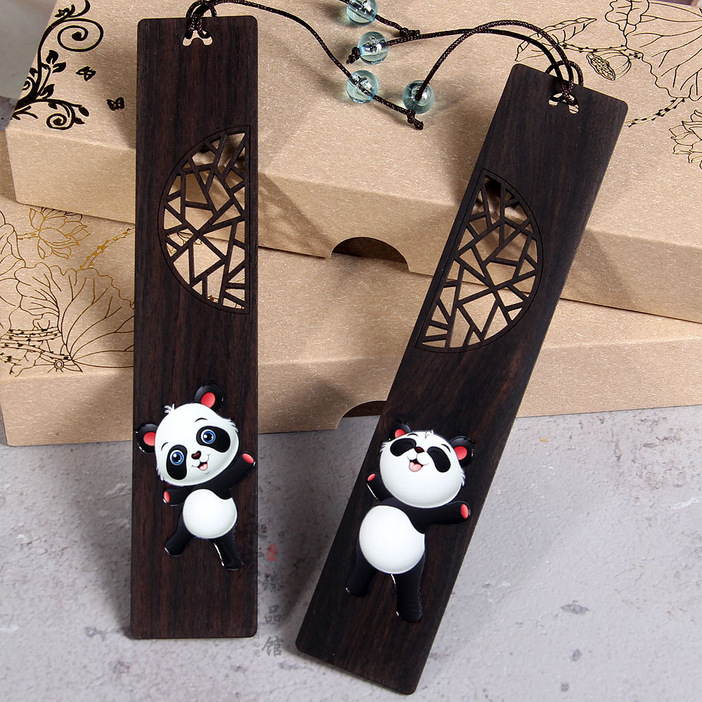 色絵黒檀パンダのしおり赤木透かし彫りパンダのしおり赤木のしおりパンダの文は字を彫ることができます。