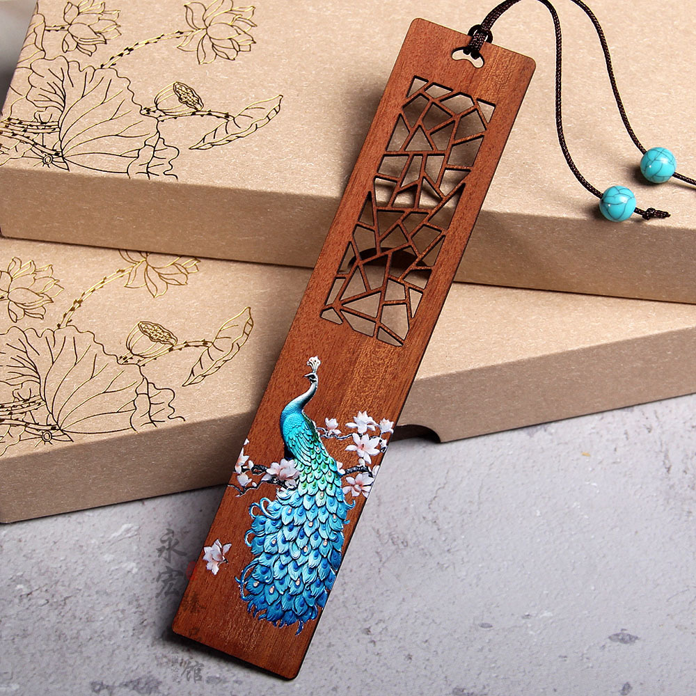 色絵の透かし彫りの孔雀のしおり透かし彫りの窓のしおりの檀木玉蘭孔雀のしおりの書斎の文創の贈り物