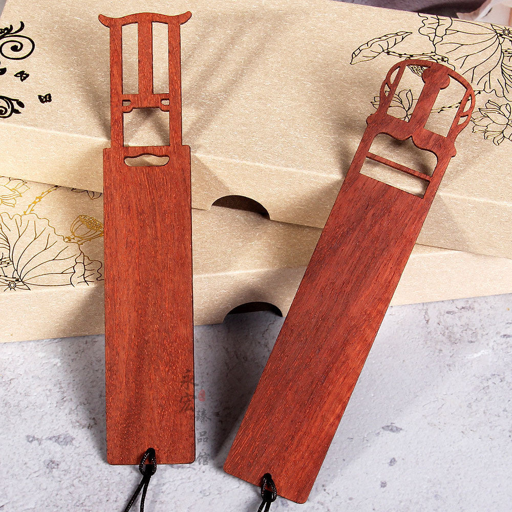 花梨の透かし彫りの窓のしおりの赤い木のアカシアのしおりのセットの文創の贈り物は字のlogoを刻むことができます。