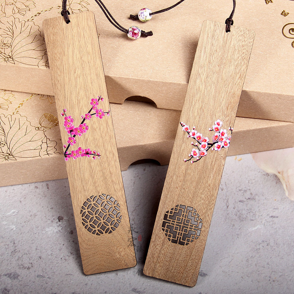 色絵の黄楊の梅のしおりの透かし彫りの窓のしおりの紅梅の白梅のしおりの文は贈り物を作って字を刻むことができます。