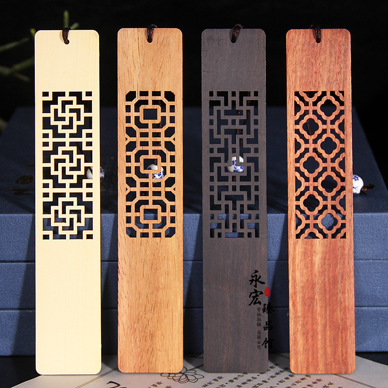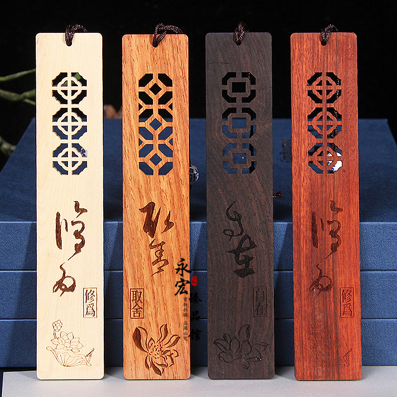中国風創意古典木造ブックマーク四色赤木荷韻透かしブックマークメーカー直販彫刻ロゴ