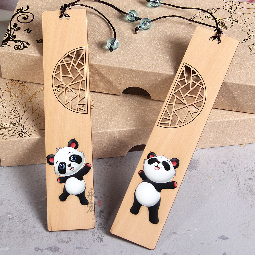 色絵パンダのしおり黄楊木色絵しおり漫画パンダ文創記念品彫刻ロゴ
