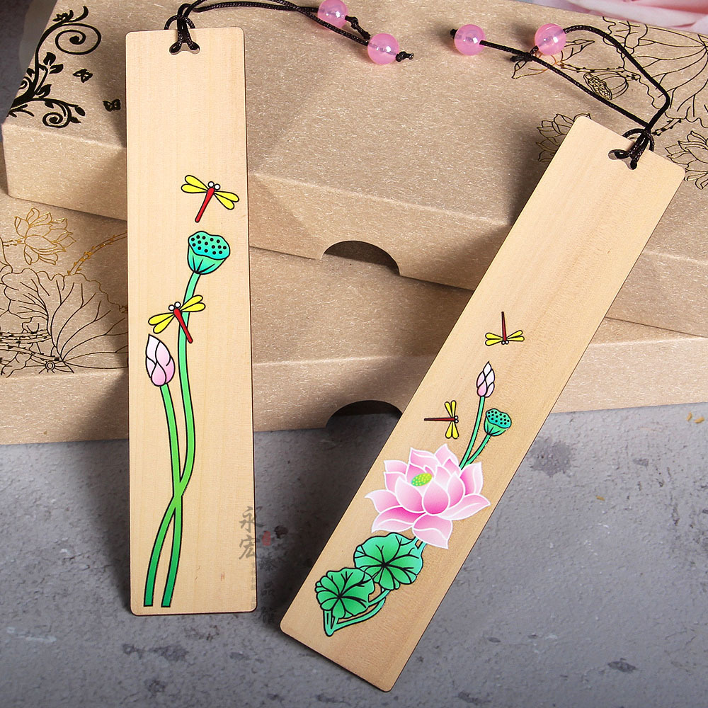 ポプラの木の色絵のハスの花のしおりの蓮のトンボのしおりの旅行記念品の創意的な贈り物は字を刻むことができます。