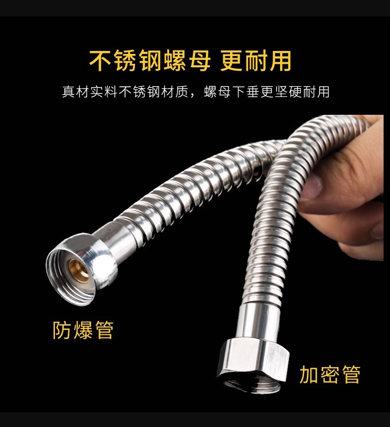 ステンレスシャワーホース花こぼれホース防爆雨シャワーノズル水道管メッキ金属ホース1.5メートル3メートル
