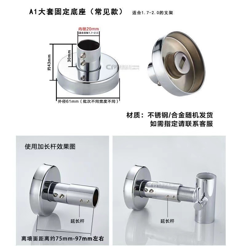シャワーバー固定ベースシャワーバー固定ベースガングレーシャワー固定部品シャワー固定器延長