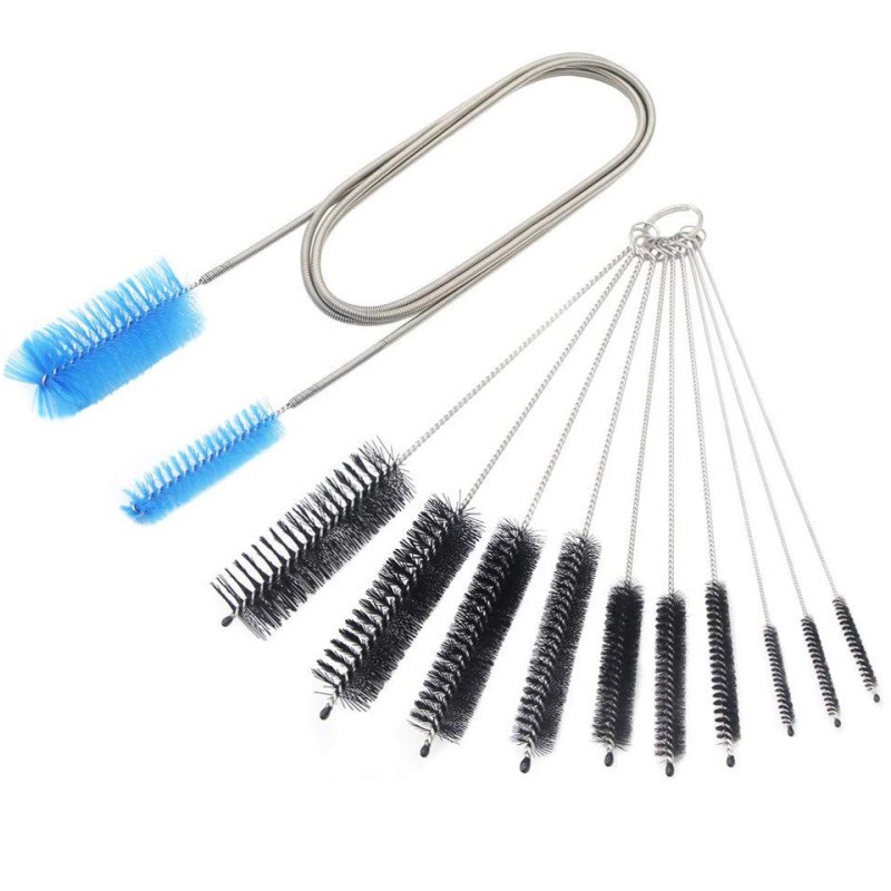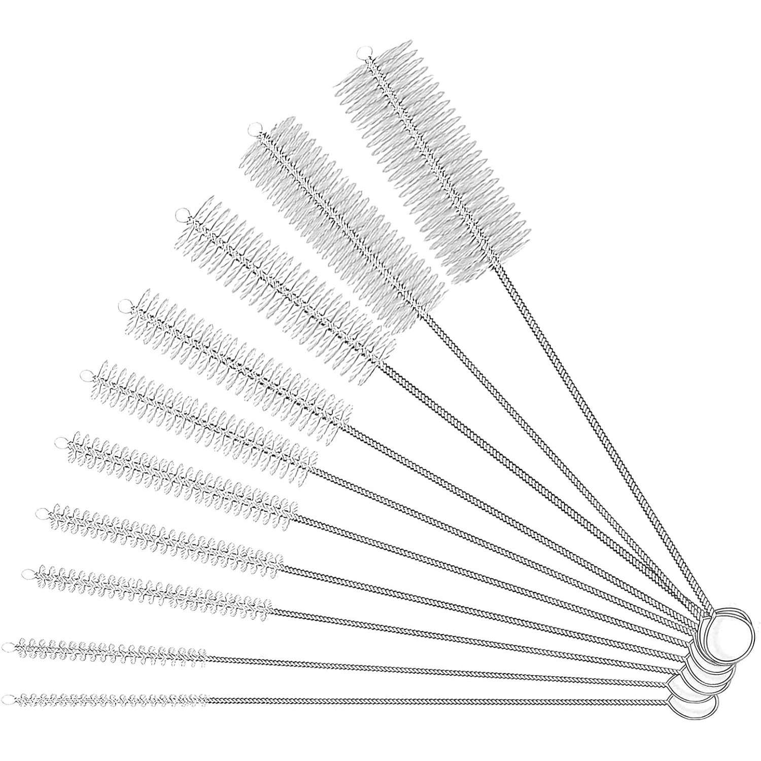 ステンレス洗浄ブラシ10点セットストローティーポット試験管カップブラシ哺乳瓶乳首洗浄ナイロンブラシ隙間ブラシ
