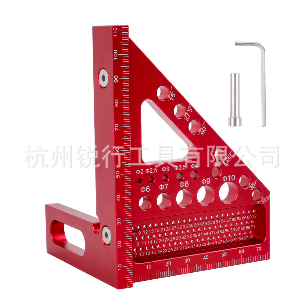 木工直尺三角定規45 ° 90 ° スクラッチ定規測定スケールDIY補助多機能穴定規