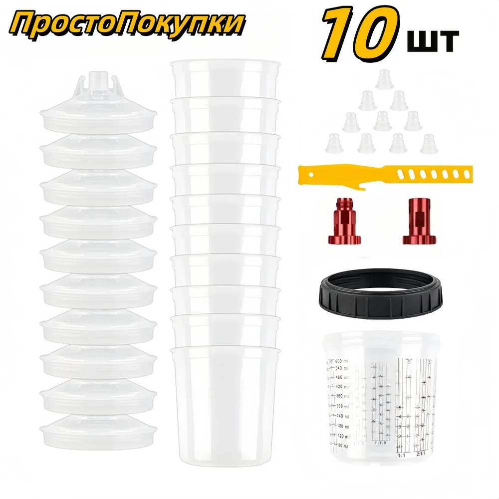 空気圧スプレーガン 10 個使い捨てポットセット使い捨てペイントミックススプレーガンカップ 300/600/800 ミリリットルに適しています