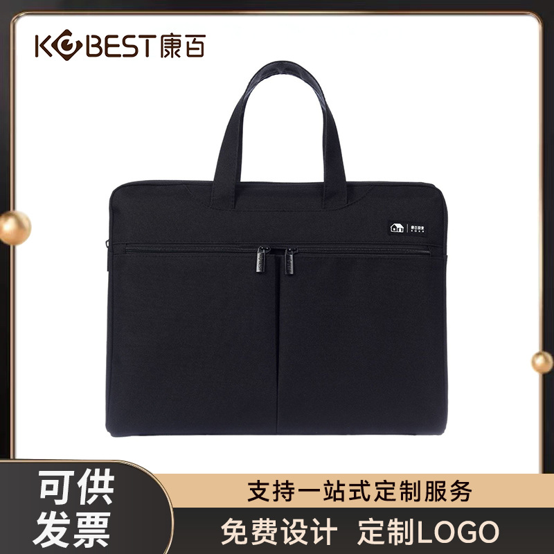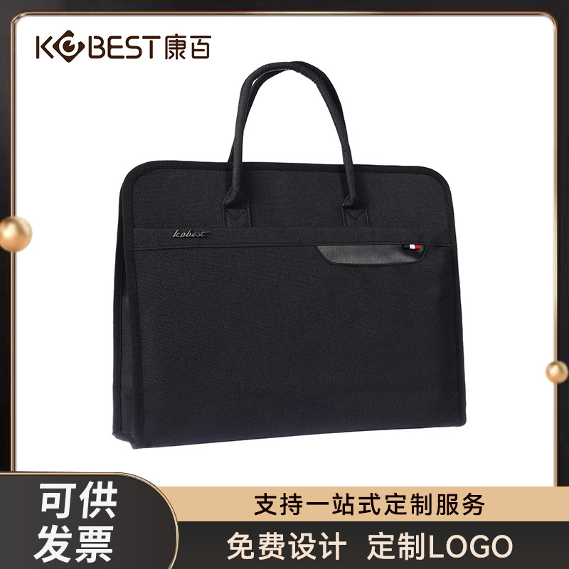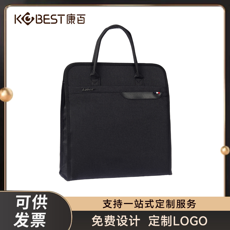 康百手提げビジネスブリーフケース大容量ファスナー書類袋書類単位会議事務バッグ印刷可通用