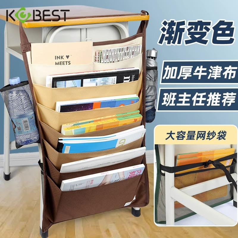 机の学生は本の袋を掛けます。中学校の高校の本は袋を収納します。