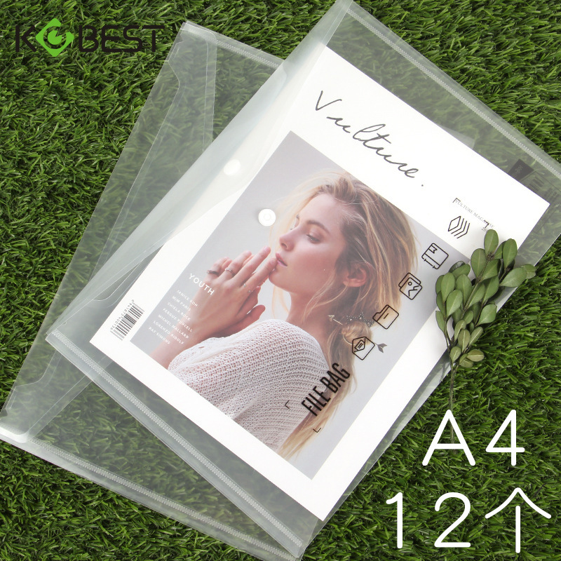 康百12個入りa4シンプルボタン透明書類袋学生透明大容量収納試験袋オフィス