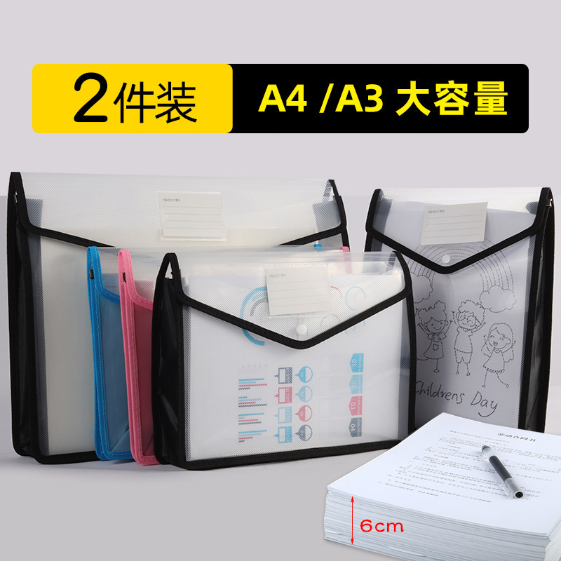 康百a4横式携帯書類袋透明学生大容量収納ボタン式資料書類袋a4厚手