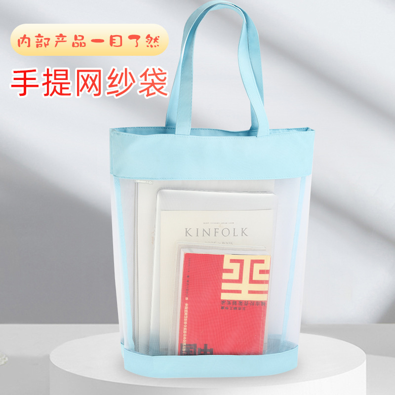 康百a3透明書類袋メッシュ袋手提げ袋大学生教科書補習袋は本を持って立体的な収納袋を持っている