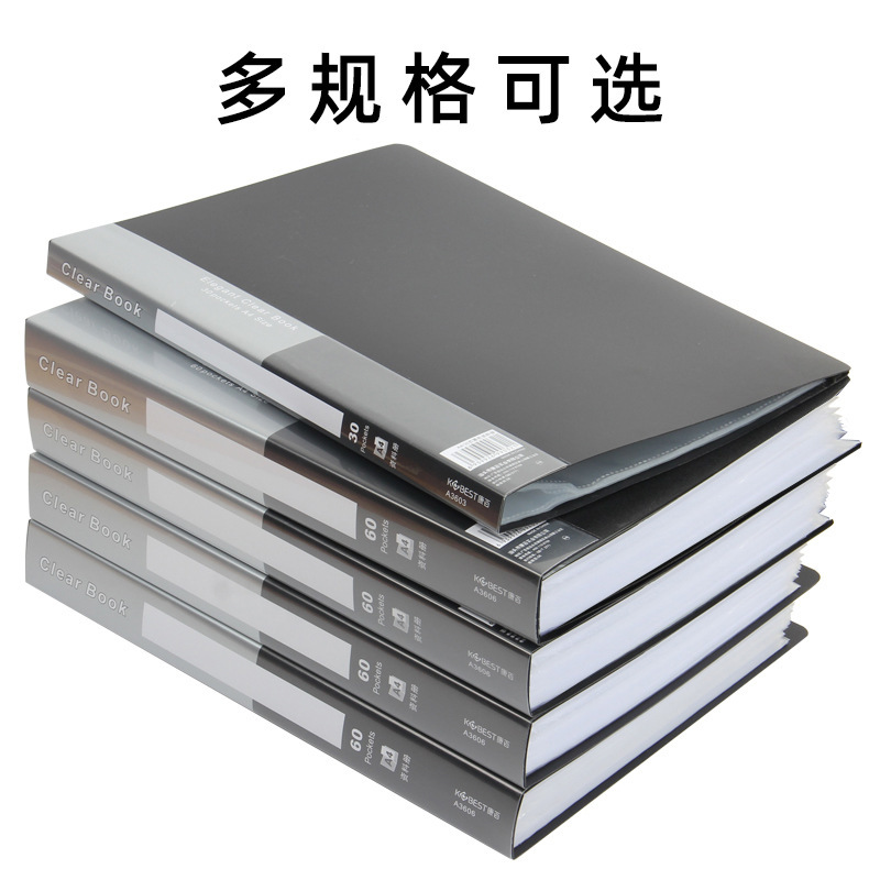 康百黒色a 4収納透明インサート袋多層ファイル学生試巻大容量携帯資料帳