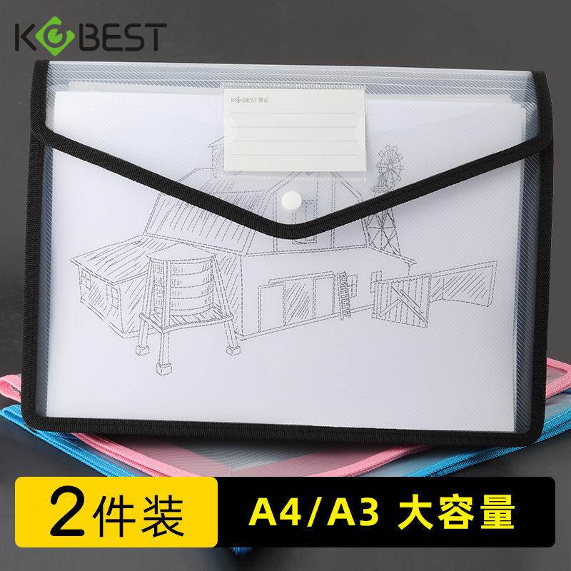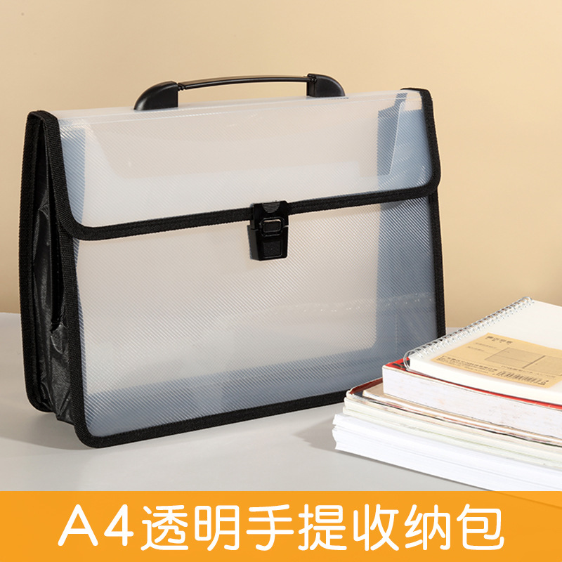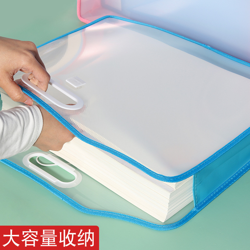 康百厚透明オルガンバッグ大容量ファイルバッグa4横式立体ボタン袋学生答案収納