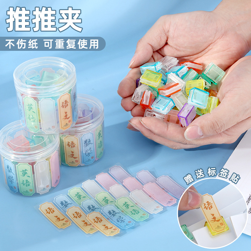 キャンディー色のバケツ入りの押しクリップ巻き防止固定器の押し引きクリップ透明a 4紙シール学習用品のクリップクリップ