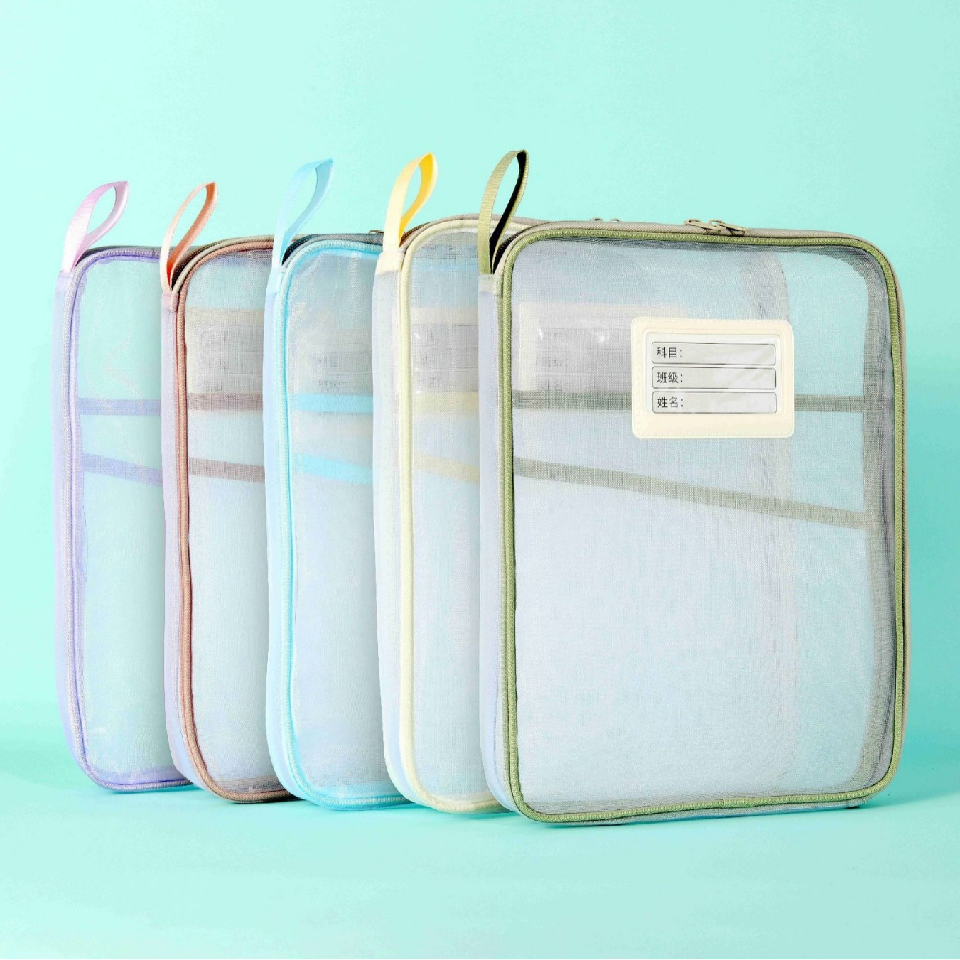 L型科目バッグ網糸ファスナー書類袋厚手手提げ袋学生作業袋試験補習袋収納袋