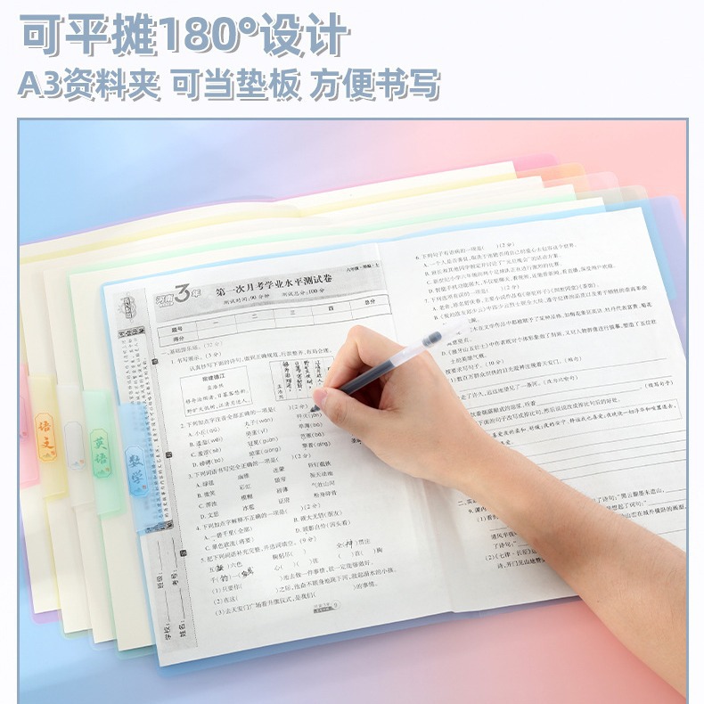 学生 A3 ダブルプルロッドインサートポケットコーナーバッグテストペーパークリップアップグレードされた回転プルロッドクリップストレージ情報ブック新学期テキスト