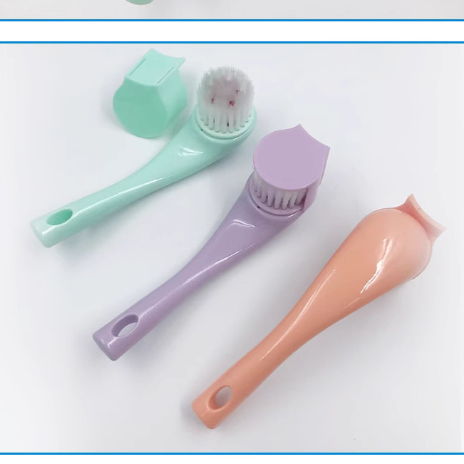 長柄洗顔ブラシ軟毛シリコンマッサージ洗顔ブラシ角質除去美容ブラシ蓋付き現物卸売り