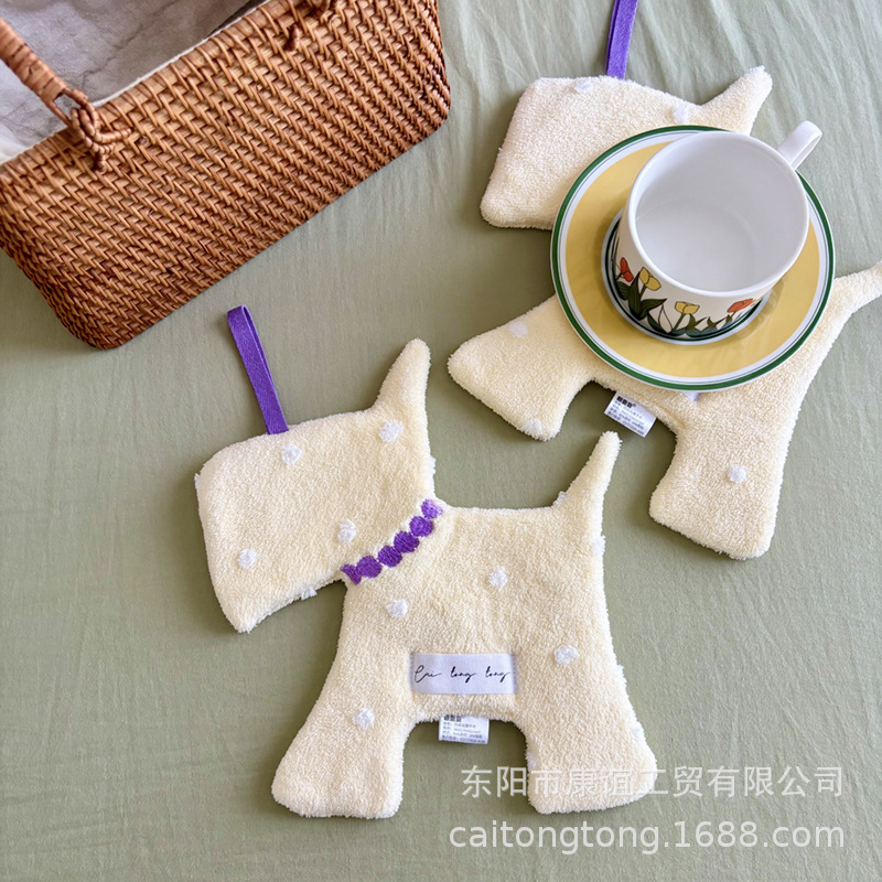 かわいい子犬のハンドタオル、クリエイティブな吊り下げ可能なバスルームの柔らかい吸収性タオル、キッチンコーラルベルベットの厚みのあるハンカチ