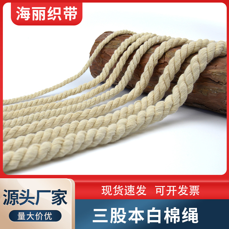 包芯綿ロープメーカー卸売り本白黒漂白包縁ロープ結束編組タペストリー丸縁太ロープ